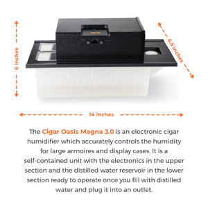 The Cigar Oasis Magna is recognized by both cigar retailers and cigar enthusiasts alike as the most reliable humidifier for cigar cabinets.