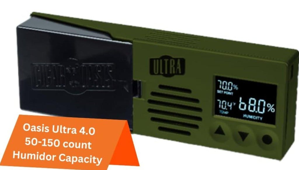 The Cigar Oasis Ultra 4.0 takes all the worry and fuss out of storing and maintaining your precious collection. Its slim profile and lid-mounted design makes it the most attractive and efficient humidification solution for desktop humidors.