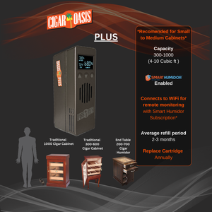 The Cigar Oasis Plus 4.0 is the most powerful active humidifier for its size—perfect for end-table style humidors. While the Cigar Oasis Plus 4.0 may be the same size as the Excel 4.0, the airflow from the open vent design provides a more rapid humidification suitable for larger enclosures, chests and end table humidors.